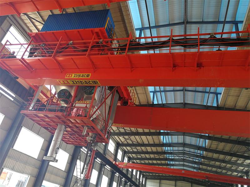 (5)其它輔助吊運(yùn)工作 在小車上裝有輔助吸料管,可清掃煙道、排除粉塵;在橋架上備有10t電動(dòng)葫蘆,進(jìn)行燃燒器的搬運(yùn)及焙燒爐的維修保養(yǎng)工作。